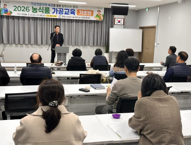 [한국뉴스1-박시현 기자]광양시는 지역 농업인의 농산물 가공 역량을 높이고 농식품 가공 창업 기반을 강화하기 위해 '2026년 농식품 가공교육 기초반'을 개강하고 본격적인 교육 운영에 들어갔다고 밝혔다.