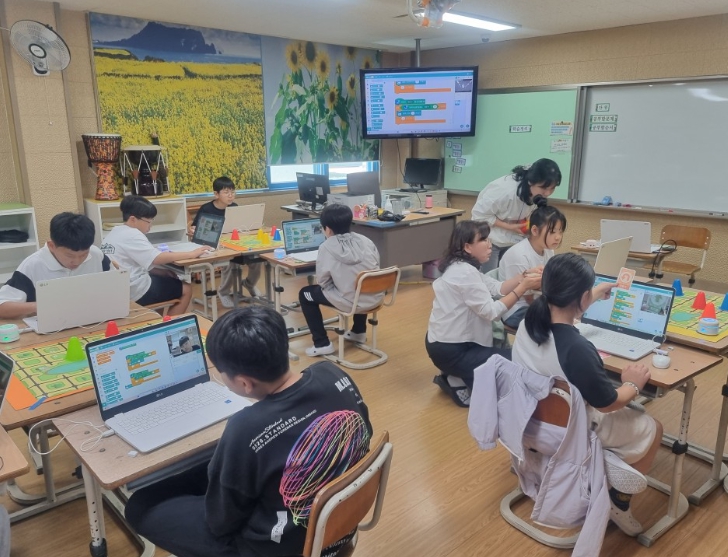 중학교 자유학기제에서는 곡성·석곡·옥과중학교 1학년을 대상으로 ‘블록 코딩 및 AI 리터러시 교육’을 총 17차시에 걸쳐 운영하고 있으며, 오는 7월에는 ‘코딩 자격증 취득 과정’도 진행할 예정이다.