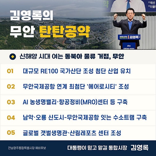 김영록, “무안-에어로 시티, 목포-해양경제 중심, 영암-RE100산단 지정” 탄탄공약 !!