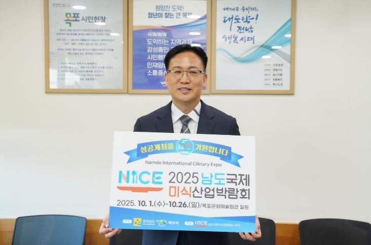 [한국뉴스1-박시현 기자]목포시는 '2025 남도국제미식산업박람회'의 성공 개최를 기원하는 릴레이 응원 캠페인에 동참하며 전국적 붐업 분위기 확산에 나섰다.
